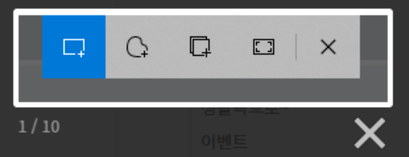 캡쳐하기 단축키는 아주 많이 사용된다. 윈도우키 + Shift + S 이며 간단하게 캡쳐하거나 원하는 크기만큼만 캡쳐가 가능하며 캡쳐가 되면 바로 복사가 되어진 상태이므로 바로 붙여넣기(Ctrl + V) 로 사용 가능하다.