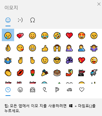 윈도우에는 이모지가 지원해준다. 특수문자보다는 좀 더 이모티콘화 되어 있어 가끔 사용하게 된다.