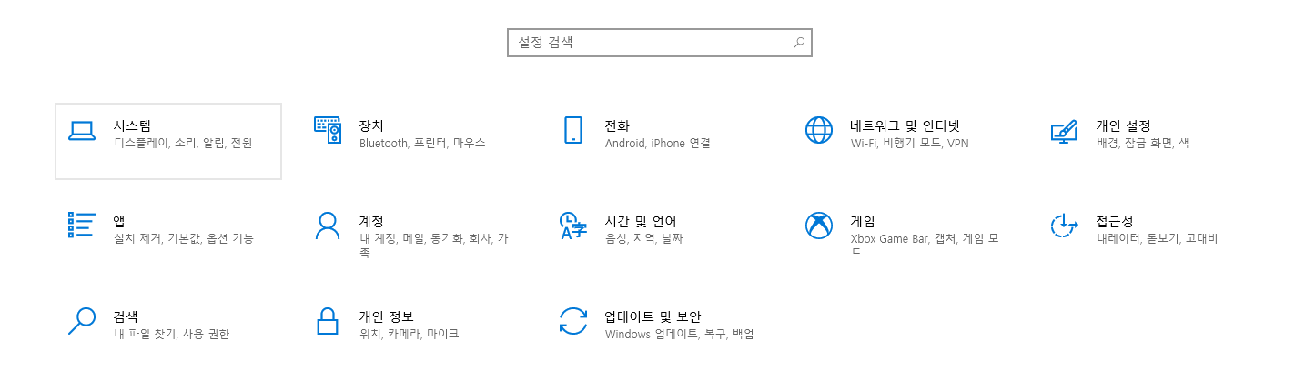 가끔 윈도우 설정을 건들어야하는 경우가 있다. 이럴때 간편하게 설정 화면으로 가는 단축키로 가능하다.