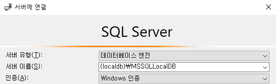 위의 정보를 '서버 이름'에 입력하며 인증은 'Windows 인증'으로 설정하여 접속하면 된다.