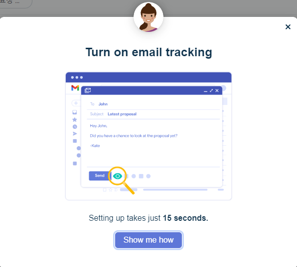 Google 로그인 이후 메일함으로 이동하면 정보이용 동의 이후 영어로 질문을 하는데 아무거나 선택해도 무방하다. 그래도 일단 'Email Tracking'을 선택하길 권장한다.
