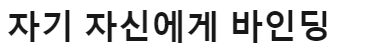 상대 바인딩중 자기 자신에게 바인딩하는 방법을 알아보자. 자기 자신에게 바인딩하는 방법은 RelativeSource 속성을 Self로 지정하여 사용한다. 요소의 속성을 다른 속성에 바인딩할 때 사용한다.