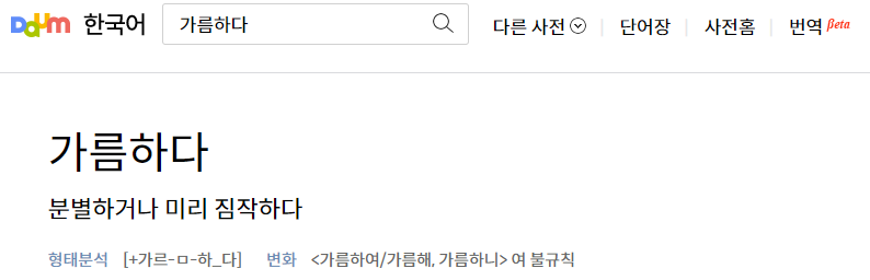 '가름하다'의 의미는 분별하거나 미리 짐작하다의 뜻을 지니고 있다. 사람이 둘 이상 또는 무엇인가 둘 이상의 것을 비교 판단하여 옳고 그름을 구분하거나 판별한다는 뜻이다. 쉽게 말해 쪼개거나 나누어 따로따로 두게 한다는 의미이다.